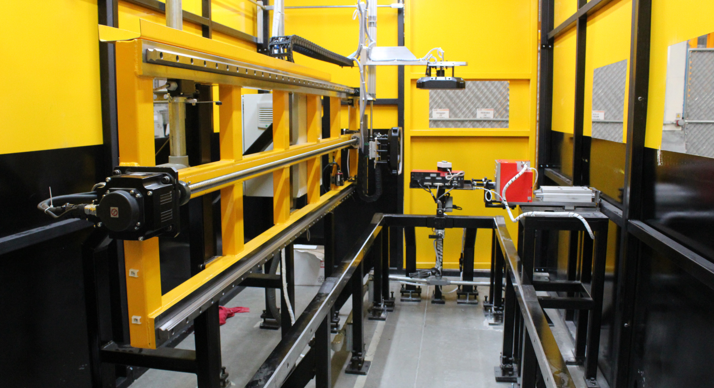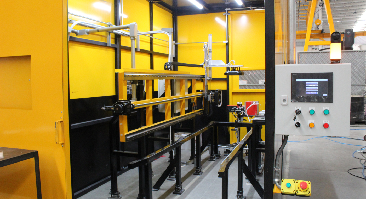 El sistema posee visualización 3d de posición y de presencia y ausencia de soldadura. Incorpora además un sistema montado sobre rieles guías lineales anclados sobre el suelo; un sistema de localización neumático marca SMC; equipo de control PLC modelo IQR y una pantalla HMI GOT de 7” de marca Mitsubishi; botonería Allen Bradley; interlocks de seguridad marca Omron; sensores fotoreflectivos marca Keyence.